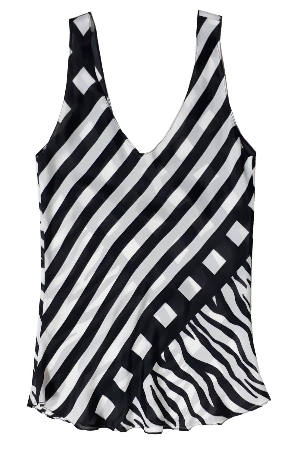 Confeccionada em viscose e seda na estampa Malka, a regata possui toque macio, modelagem soltinha com alças largas e acabamentos pespontados.