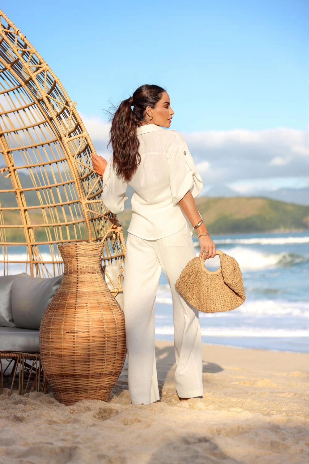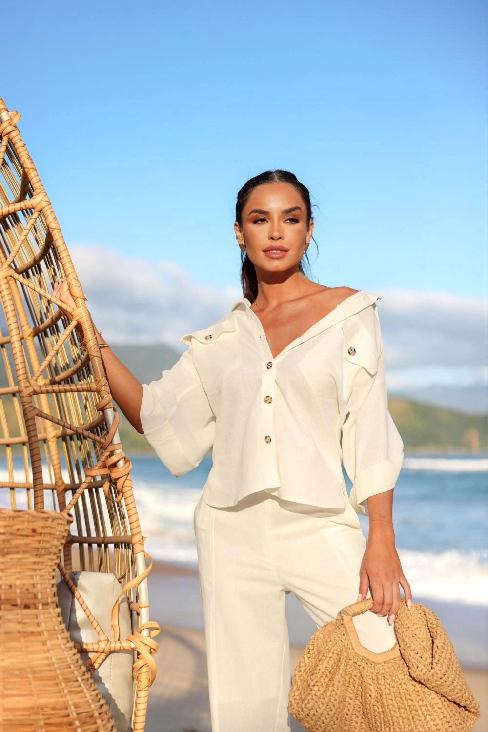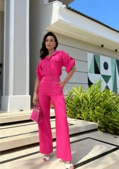 Descrição Nossa camisa Caroline pode ser usada com nossa calça Caroline, juntas formam um conjunto leve, fluido e chique. Perfeito para os dias de verão.Composição 70% viscose 30% linho