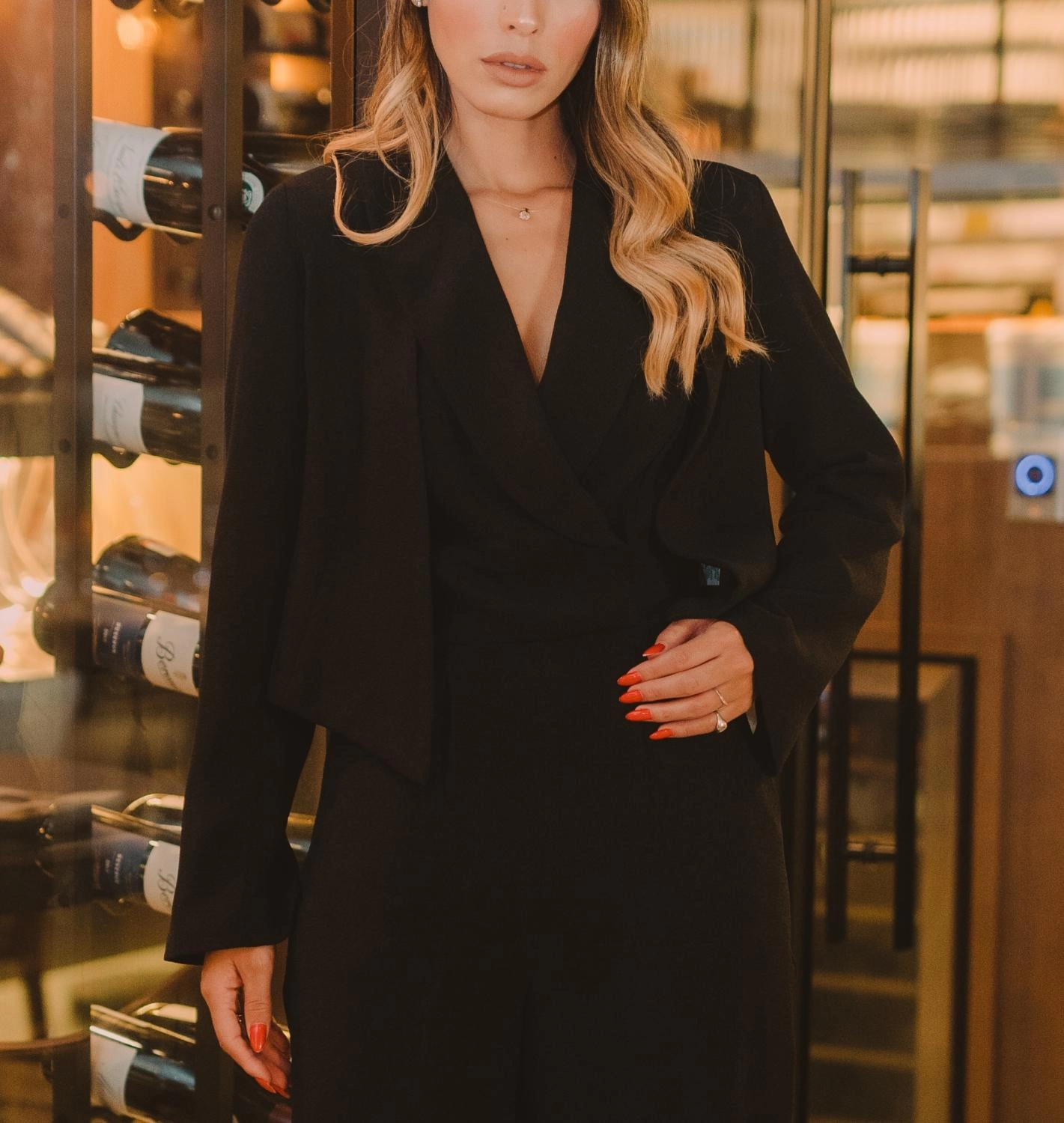 O blazer cropped é perfeito para quem quer um visual sofisticado que traga também um toque moderno que valorize a silhueta. Invista no Casaqueto Ella ao lado do macacão no mesmo tom, sandálias de salto e colar metalizado para finalizar. O resultado é diferenciado e impactante.