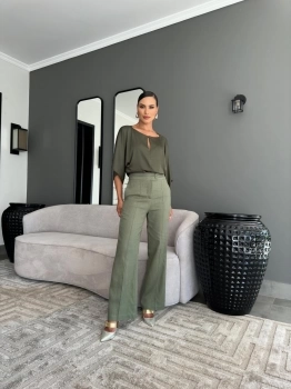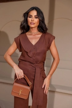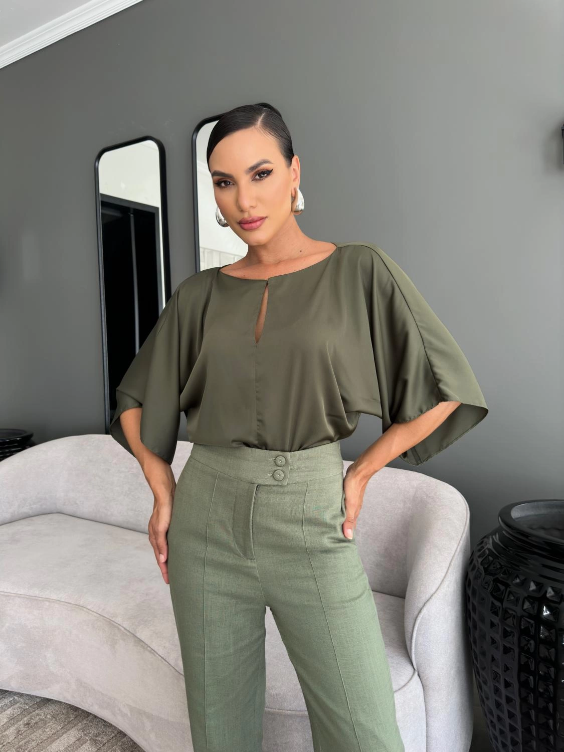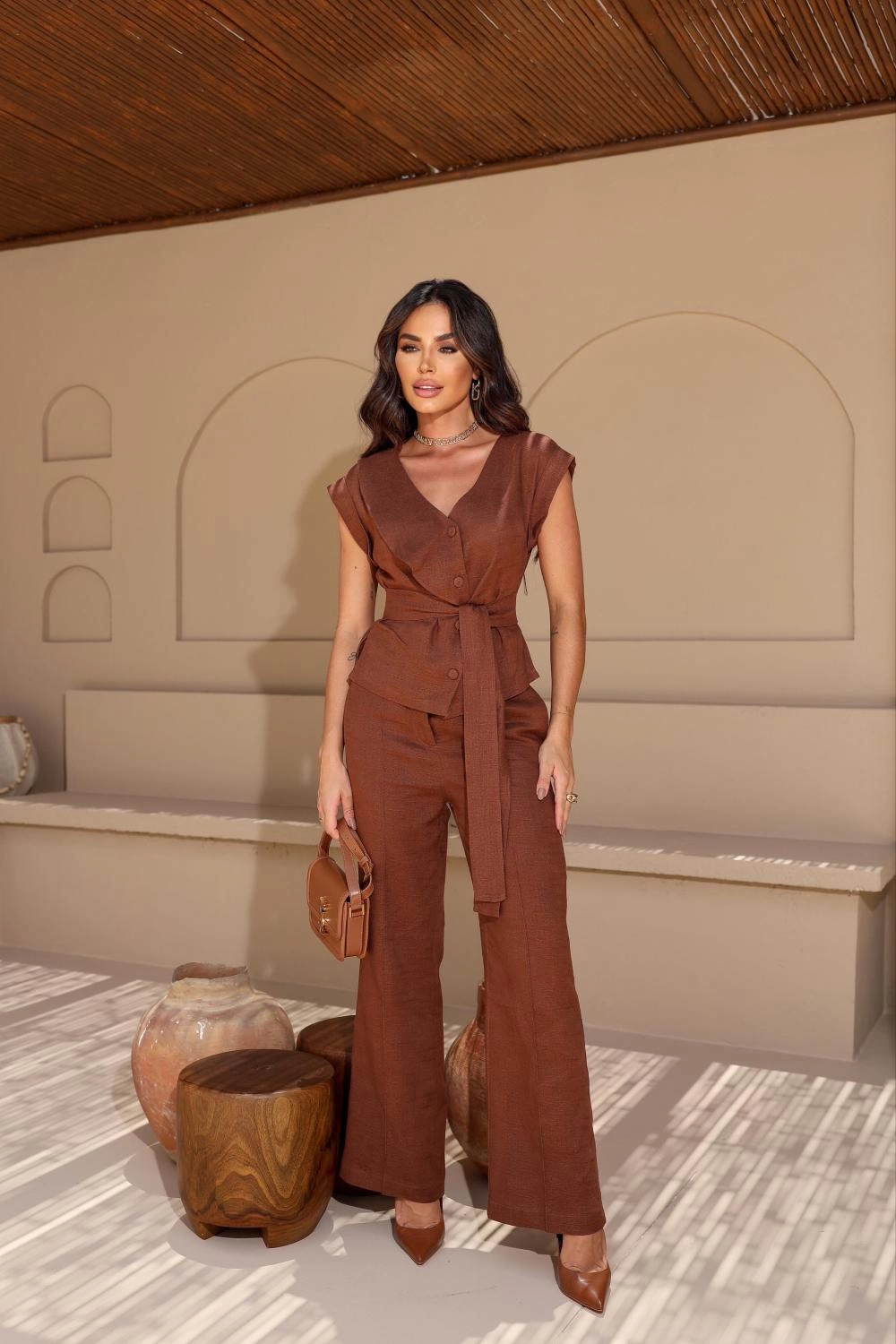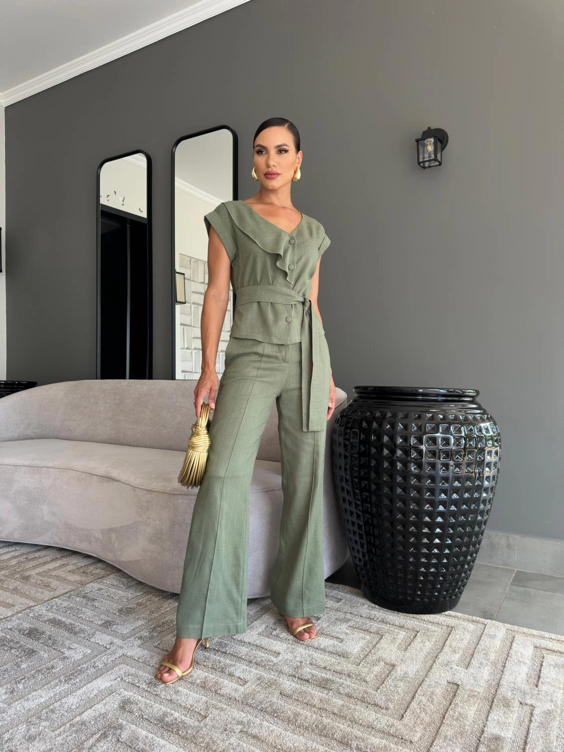 Descrição Montando um look ultrachic com nossa Blusa Marcella, a calça Marcella é aquela peça versátil e atemporal, que te acompanha do inverno ao verão. Aposte!Composição: 70% viscose 30% linho