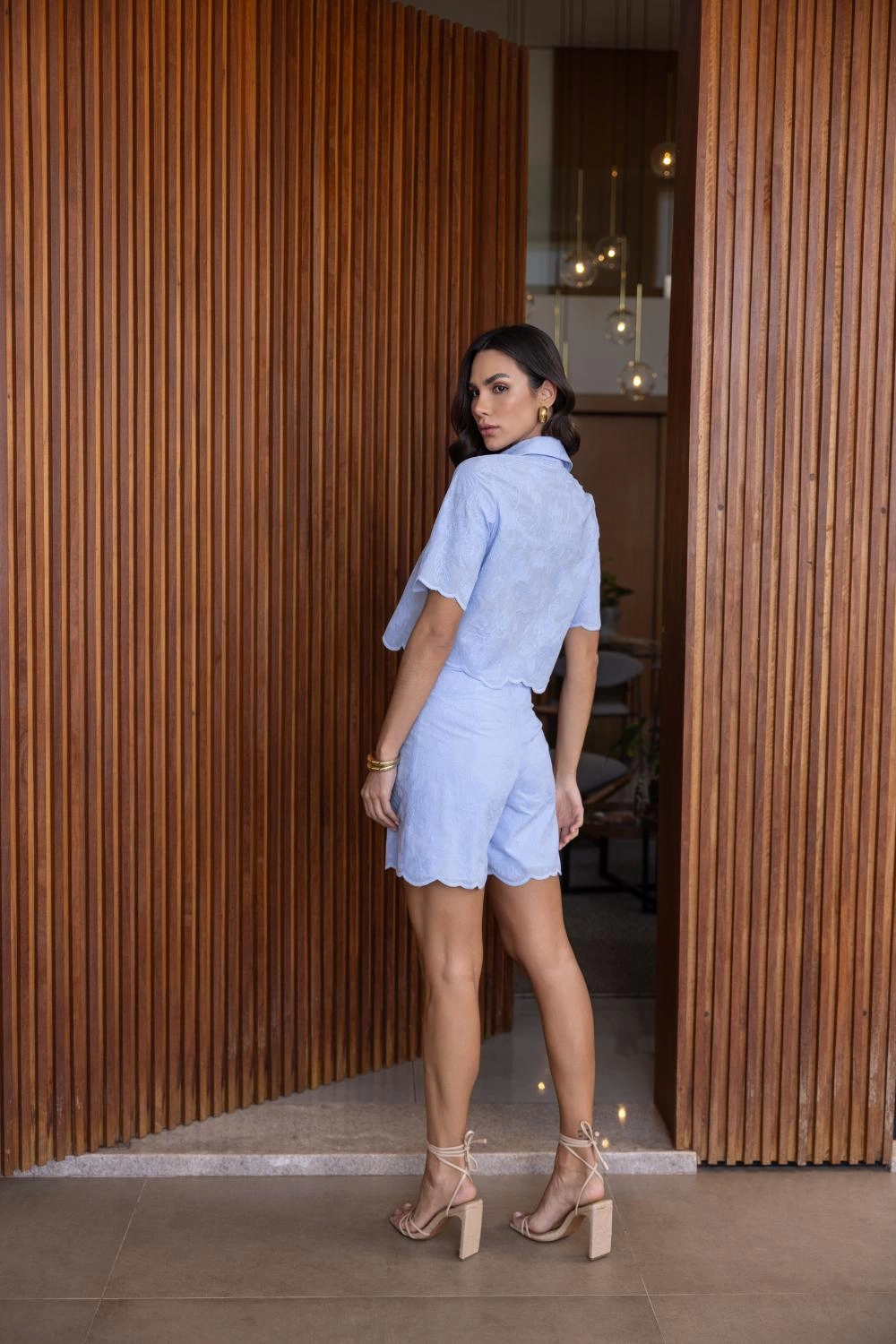 Confeccionado em algodão leve com bordados delicados, modelagem reta, fechamento com zíper, colchete interno, barra diferenciada, detalhe do tecido inspirado na natureza que confere charme e frescor à peça. Seu toque suave e arejado é perfeito para os dias de verão.